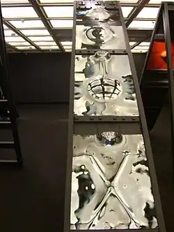 An Águeda Dicancro sculpture of steel and glass can be found in the Telecommunications Tower (Montevideo), the current location of ANTEL.[8]