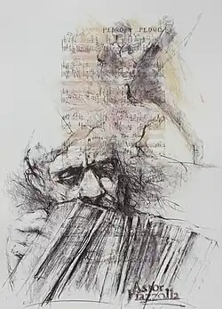 Astor Pantaleón Piazzolla (Spanish: [pjaˈsola], Italian: [pjatˈtsɔlla]; March 11, 1921 – July 4, 1992) was an Argentine tango composer, bandoneon player, and arranger. His works revolutionized the traditional tango into a new style termed nuevo tango, incorporating elements from jazz and classical music. A virtuoso bandoneonist, he regularly performed his own compositions with a variety of ensembles. In 1992, American music critic Stephen Holden described Piazzolla as "the world's foremost composer of Tango music".[1]