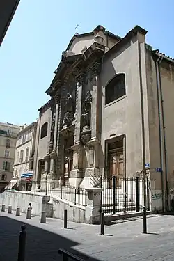 The church building was constructed in the Baroque style in the 17th century.[1][3][4] It was dedicated by Étienne de Puget, who served as the bishop of Marseille from 1644 to his death in 1668, on October 21, 1648, in honour of Saint Louis, who served as the king of France from 1226 to 1270.[3][6][7] It served as the chapel of a convent of Recollects, a Reform branch of the Franciscans.[8] The facade was destroyed during the French Revolution of 1789–1799.[3]