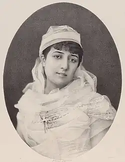 Ambre was born in Oran in French Algeria to a prosperous French family.[1][b] After her father's death when she was sixteen, she went to France to study at the Marseilles Conservatory and made her debut in that city. She then went to Paris for further training with Gustave-Hippolyte Roger and first appeared there at the Opéra-Comique in La fille du régiment, after which she was engaged to sing in Geneva, Bruges, Brussels, The Hague, and Amsterdam. According to the French press at the time, she appeared in Amsterdam in the 1876/1877 season to great success in the title roles of Mignon, Carmen, and Ernest Guiraud's Piccolino, and a brilliant future was predicted for her.[5][6][7]