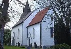 Östergarn Church was built in the middle of the 13th century. Originally a tower was also planned to be built west of the nave, but it was never constructed. A sacristy was added in 1786. The plan of both the nave and the chancel are almost square, which is unusual for churches on Gotland.[1][2]The church has suffered from a fire in 1565, during the Northern Seven Years' War, and was furthermore pillaged by Russian troops both in 1715 and 1717. No medieval furnishings therefore remain in the church. Instead, these are largely from the 18th century, with the exception of the baptismal font, which from the early 17th century. The facade of the church organ is from 1850, designed by Fredrik Wilhelm Scholander. The cemetery contains a memorial in commemoration of fallen crewmembers from the German minelaying cruiser SMS Albatross which ran aground outside Östergarn after a naval battle in 1915.[1][2]