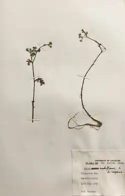 The original material was cultivated for a number of years in Cambridge University Botanic Garden, but this stock is no longer extant, nor was material placed in Cambridge University Herbarium (CGE).[4] However, the original collections made by Walters are present as dried specimens in the University of Leicester Herbarium (LTR), presumably retained after being sent to then herbarium director Tom Tutin for determination.