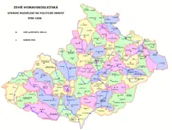 The district was formed after the division of Cieszyn Silesia on 28 July 1920, which split the town of Teschen/Cieszyn/Těšín into Cieszyn and Český Těšín as well as the preceding Teschen County originally formed in 1850 on the territory of Austrian Silesia. Following the Munich Agreement, in November 1938 together with the Trans-Olza region it was annexed by Poland. The Český Těšín District was administratively transformed to a short-lived Cieszyn Zachodni County and afterwards it was merged with Cieszyn County of Silesian Voivodeship.[1] The area was then annexed by Nazi Germany at the beginning of World War II. After the war it was restored to Czechoslovakia. Český Těšín District ceased to exist as a result of a reform act issued on 9 April 1960 and was succeeded mostly by the Frýdek-Místek District, with some municipalities including Český Těšín transferred to the Karviná District.[2]