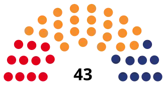 All seats on the city council were being contested in the 2014 election. The number of seats was lowered from 43 to 40.