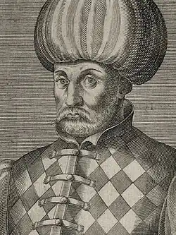 ![]() An engraving of Mustafa by André Thevet, 1584 | |