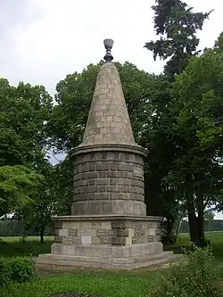 In the southern part of the municipality, between the fields, is Žižka's Mound. It is a 16 m (52 ft) high conical memorial, which is said to be located at the place where Jan Žižka died, although today many experts dispute that this is the exact location. It dates from 1874.[7]