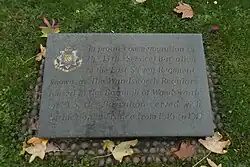 More recent memorial tablets have been placed in the garden at Wandsworth Town Hall. These include one to the 13th East Surreys, 'The Wandsworth Regulars', unveiled on 26 September 1964.[103][106] The 13th and 14th (Wandsworth) Bns, East Surreys are listed on the adjacent tablet to Wandsworth Army Units 1914–45, placed on 1 February 2008.[103][107] Nearby there is a VC plaque to Cpl Edward Foster[108] and he is listed on the tablet to VC and GC winners from the borough.[109] A new footpath through King George's Park in Wandsworth was named 'Fosters Way' in his memory on 8 May 1995.[52][103]