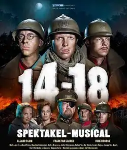 14-18, the musical is a Flemish musical about the First World War with the music of Dirk Brossé. The original production by Gert Verhulst and Hans Bourlon opened in April 2014 at the Nekkerhal in Mechelen, directed by Frank Van Laecke and produced by Studio 100.[1] The show closed on November 11, 2014, after being seen by more than 320,000 visitors. In 2024 the musical reopened on the 2nd of June with an updated version in the Studio 100 pop-up theatre in Puurs. This is a theatre that they specially build for their musical about the Second World War 40-45.