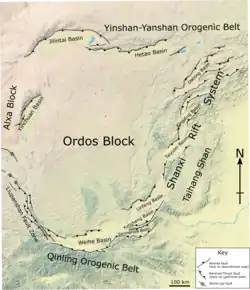 - ^ Shi, W.; Dong, S.; Hu, J. (2019). "Neotectonics around the Ordos Block, North China: A review and new insights". Earth-Science Reviews. 200: 102969. doi:10.1016/j.earscirev.2019.102969. S2CID 210616833.
