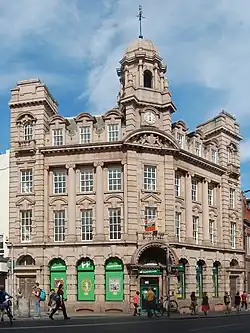 The building at 163 North Street in Brighton, part of the English coastal city of Brighton and Hove, was erected in 1904 for an insurance company and has since been used as a branch by several banks and building societies. It now houses a bookmaker's shop. The distinctive pink granite Edwardian Baroque-style office, embellished with towers, decorative carvings and a landmark cupola, has been called "the most impressive building" on Brighton's main commercial thoroughfare. One of many works by prolific local architecture firm Clayton & Black, it has been described as their chef d'œuvre. English Heritage has listed it at Grade II for its architectural and historical importance.