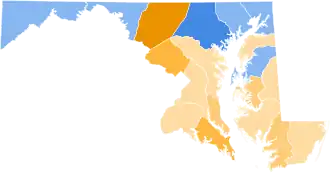 - ^ Caroline, Cecil, Dorchester, Harford, Kent, Queen Anne's, Somerset, Talbot, Worcester counties