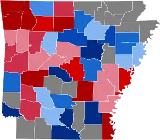 Fourteen counties either did not vote or had their votes thrown out, because, according to Governor Powell Clayton, violence from Confederate militias made voter registration impossible. These counties are: Ashley, Bradley, Columbia, Craighead, Greene, Lafayette, Little River, Mississippi, Sevier, Woodruff, Conway, Crittenden, Drew, and Fulton.[1]