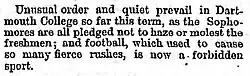 Article on The Brooklyn Daily Eagle reporting the ban of football at Dartmouth University, 11 Oct 1870