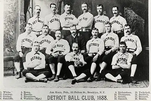 The 1888 Detroit Wolverines finished the season with a 68–63 record, finishing in fifth place in the National League. After the season, the ownership, having lost so much money on the team, disbanded the team and sold off the players.