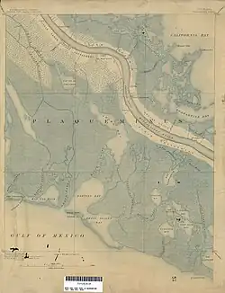 According to the National Hurricane Center, the Cheniere Caminada hurricane killed around 2,000 people, of which approximately 1,100–1,400 occurred onshore.[13] Contemporaneous enumerations of the fatalities provided death tolls ranging between 1,884 and 2,448, including 779 deaths in Cheniere Caminada, Louisiana, and 250 deaths in Grand Lake, Louisiana.[10] Most of the deaths occurred in southeastern Louisiana, particularly around the Mississippi River Delta and in Plaquemines Parish; the Weather Bureau reported that over 1,500 of those fatalities were the result of drowning.[3] This death toll ranks the hurricane as the deadliest in Louisiana history and – alongside the Sea Islands hurricane earlier in 1893 – as among the deadliest to ever strike the continental U.S., eclipsed by only the 1900 Galveston hurricane and the 1928 Okeechobee hurricane.[13][14] The swath of coastal damage spanned 500 mi (800 km), extending from Louisiana's Timbalier Bay eastward to Pensacola, Florida.[10]