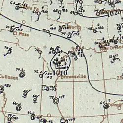 Thereafter, the storm paralleled the south coast of Cuba, until making landfall in Pinar del Río Province late on July 7.[4] Abnormally high tides and strong winds caused flooding in a majority of homes along the south coast of the province.[6] Early on July 8, the system emerged into the Gulf of Mexico.[4] The Weather Bureau office in Galveston, Texas, began warning residents of the approaching cyclone on July 9.[6] The system weakened while approaching the coast, and around 10:00 UTC on the following day, it made landfall near Matagorda with winds of 50 mph (80 km/h).[4] Some locations reported tropical storm force winds. Tides caused water to reach waterfront streets in Galveston.[6] The storm quickly weakened and dissipated late on July 10.[4]