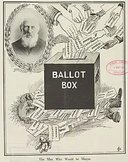 There was a strong groundswell of opinion that the city's mayoralty should be held by someone of high status for the occasion of the royal visit, and a requisition was put to John Logan Campbell on 11 March.[2] Campbell had lived in Auckland since 1840 and was thus the longest-lived resident of the city and had become known as the "Father of Auckland".[3][4] Campbell was nominated by the outgoing mayor, Goldie, and by George Fowlds MP.[5]