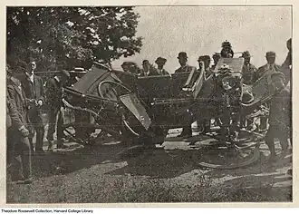 The 1902 Pittsfield Streetcar Incident was a collision involving President Theodore Roosevelt, who was traveling in a horse-drawn carriage in Pittsfield, Massachusetts. A speeding electric streetcar under the control of motorman Euclid Madden and conductor James Kelly hit the presidential carriage as it crossed the trolley tracks, jettisoning Roosevelt, who was injured. The accident resulted in the death of William Craig, Roosevelt's Secret Service agent, and injured Secretary to the President George B. Cortelyou. Governor Winthrop M. Crane was lightly bruised.[1][2]