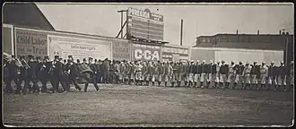 Opening day ceremonies at the Huntington Avenue Grounds in celebration of the 1903 World Series championship by the Americans.
