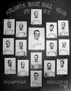 The 1909 Atlanta Crackers season represented the Atlanta Crackers baseball team in the Southern Association and won the league pennant.[1][2][3] John Heisman was president of the group of owners.[4] The team was managed by Billy Smith and led by Dutch Jordan. The team included Tommy Atkins, Scotty Barr, Bill Bartley, Dick Bayless, Roy Castleton, Tom Fisher, Enos Kirkpatrick, Roy Moran, and Syd Smith.[5][6] Manager Billy Smith credited Syd Smith as the team's best player.[7]
