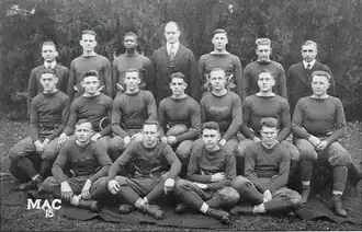The 1915 Michigan Agricultural Aggies football team was an American football team that represented Michigan Agricultural College (MAC) as an independent during the 1915 college football season. In their fifth and final year under head coach John Macklin, the Aggies compiled a 5–1 record and outscored their opponents 258 to 38.[1]