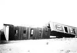 The storm's winds damaged roughly half of the buildings in Pascagoula, Mississippi,[7] where multiple industrial facilities were destroyed. Similarly extensive damage occurred just to the north in Moss Point.[21] The storm's effects diminished to the west of Pascagoula, though significant property damage was still reported in Biloxi and Gulfport; one person was killed by the storm in the former city,[7] and a handful of homes along that stretch of coast were destroyed.[15] Property damage in Mississippi coastal towns was estimated at $130,000,[7] and generally proved less severe than initially feared.[15] By one estimation, potentially $3 million worth of standing timber in southeastern Mississippi was destroyed,[22] though sources in Hattiesburg suggested the damage to timber locally was less severe than initially feared. In particular, it was reported that most of the trees toppled by the storm were weak and of little value. Regardless, many sawmills lost their stock or were otherwise damaged, with fires breaking out in several plants. Lumber processing companies in Laurel alone sustained around $200,000 in damage,[15] and in that town, "not more than a dozen" out of 2,400 houses in Laurel escaped the storm unscathed.[21] Greater than 5 in (130 mm) of rain fell over most of eastern Mississippi,[8] peaking at 21.53 in (547 mm) in Leakesville.[9] The entire length of the Pascagoula River in Mississippi overflowed to an average of 3 mi (4.8 km) from each bank.[9]