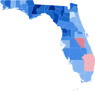 With the single exception of William Howard Taft's win in Calhoun County in 1908[2] the Democratic Party won every county in Florida in every presidential election from 1892[a] until 1916. Only twice – and never for more than one term – did any Republican serve in either house of the state legislature between 1896 and 1928.