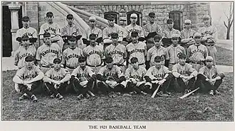 The 1921 Vanderbilt Commodores baseball team represented the Vanderbilt Commodores of Vanderbilt University in the 1921 NCAA baseball season, winning the SIAA championship.[1][2] By May 29, the team had hit over .225 for the season, garnering 27 home runs, 17 triples, 26 doubles, 107 singles, and a total of 138 hits for 326 bases with 54 stolen bases.[3]