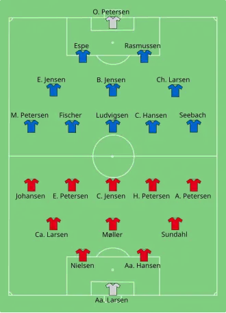 3. ^ a b Johannes Gandil (1935). "Den fjortende Landsfodboldturnering". Dansk Fodbold (in Danish) (1st ed.). Copenhagen: Sportsbladets Forlag. pp. 192–193.