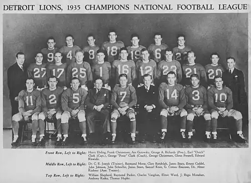 - ^ "10,000 See Lions Beat Eagles, 35 to 0". Detroit Free Press. September 21, 1935. p. 13.