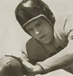 Despite being drafted by the NFL after graduation, fullback and linebacker Jim Kisselburgh was issued a low military draft number and joined the Army Air Corps in January 1941 rather than be forced to accept placement in another branch of the service.[27] He served during the war as a member of a bomber crew and was shot down on his 35th mission over Germany.[28] He was captured and interned in a prisoner-of-war camp at Moosburg, Germany, located 30 miles northeast of Munich.[28] He was safely liberated after Germany's surrender.[28]