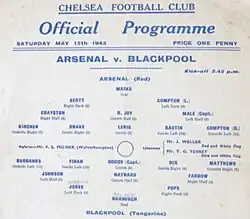 5. ^ "Blackpool Downs Arsenal For Title; Wins by 4-2 Before 55,000 to Capture Unofficial Honors in English Soccer". The New York Times. 16 May 1943. Archived from the original on 20 July 2023. Retrieved 20 July 2023.