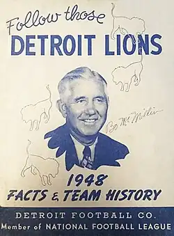 The 1948 Detroit Lions season was the team's 19th overall season in the league . The team failed to improve on their previous season 's output of 3–9, winning only two games.[ 1] They failed to qualify for the playoffs for the 13th consecutive season. In this season they used scarlet and black uniforms instead of the traditional Honolulu blue and silver. They returned to Honolulu blue and silver the following season.[ 2]
