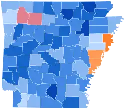 1. ^ The only other Democrats to claim Searcy County since the Civil War have been Franklin D. Roosevelt in 1932 and Jimmy Carter in 1976, although some figures for 1912 have Woodrow Wilson carrying the county because the totals for incumbent William Howard Taft in Searcy and Sebastian counties are contradictory.