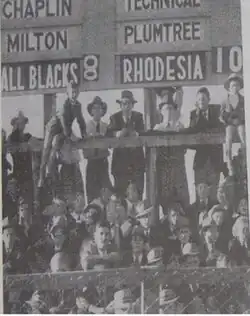 Rugby in Northern and Southern Rhodesia was governed on an all-Rhodesia basis by the Rhodesia RFU but they were treated as a province of South Africa for rugby reasons and their players were eligible for selection by the South African team.[3][4][5] In 1949, the All Blacks visited Rhodesia as a part of their tour of South Africa. The New Zealand team's management for the tour had been troubled due to sailing to South Africa on a ship with little space to train, the team not bringing any Māori players due to South Africa's recently introduced apartheid laws and the fact there was no formal tour coach.[5][6] The team also travelled with only ten capped players and were led by Fred Allen.[4] As a result of there being no Māori players, the All Blacks did not perform their traditional haka before any match in protest with manager Jim Parker explaining "The war cry is a creation of the Māoris and as we have no Māoris with us we are not giving the war cry."[7]