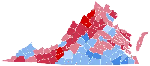 Eisenhower won Virginia by a 12.97 point margin, making this the first time Virginia voted for a Republican since it was won by Herbert Hoover in 1928, and the best Republican performance in Virginia to this point. Virginia was Eisenhower's strongest state in the old Confederacy, marking a shift from Virginia being previously regarded as a safe blue state to more of a red state. Eisenhower ultimately won the national election with 55.18 percent of the vote, making Virginia two points more Republican than the nation at-large. This was the first occasion any Confederate State voted more Republican than the nation since Virginia itself in 1888 voted 0.30 points more Republican while its blacks remained enfranchised and large numbers of white Readjusters had joined the GOP.[4]