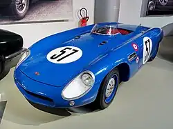 Porsche returned with three cars to contest the S-1500 category against the OSCAs. The Porsche 550s were given a new quad-cam engine making 110 bhp and 210 km/h, and this year were open-top spyders. Another was also given a smaller 1089cc engine for the S-1100 class.[18] The small British sportscar firm Kieft arrived with two cars to take on the smallest Porsche – bringing the first fibreglass chassis to Le Mans. One was also the first car with the new Coventry Climax FWA engine.[13][5]