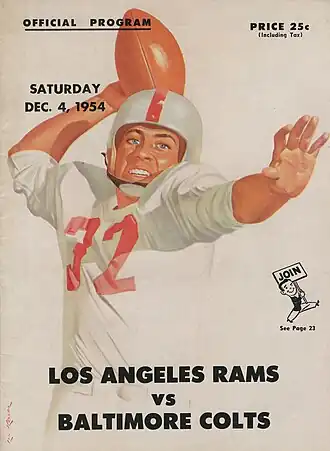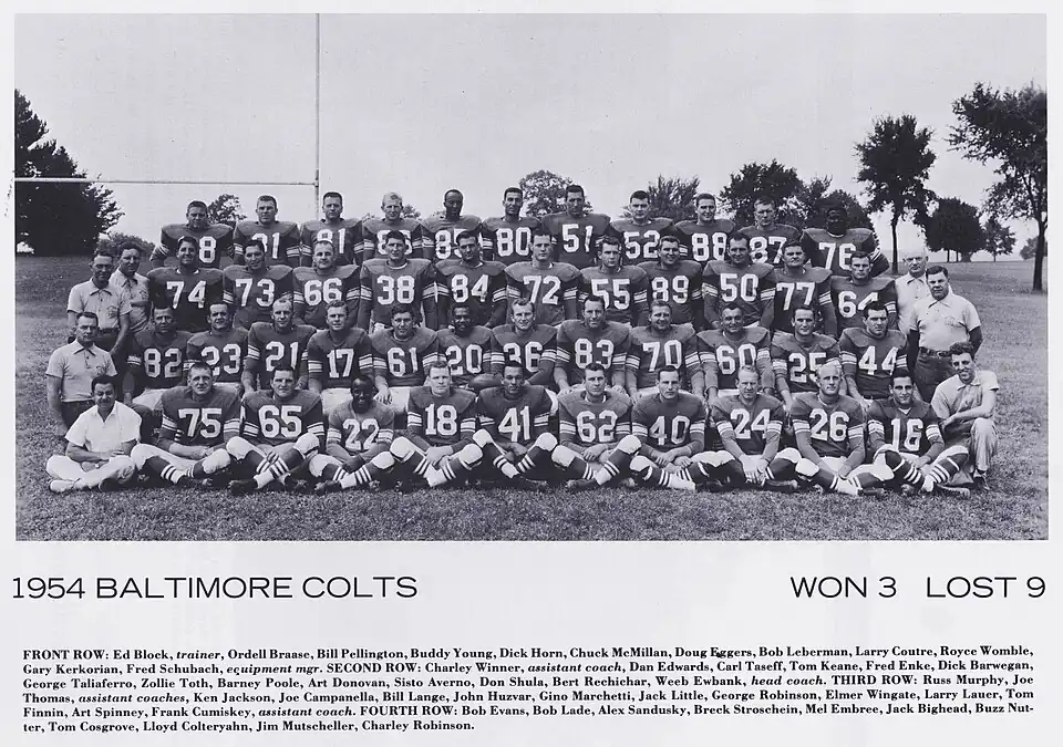 2. ^ Walter Taylor, "Colt Shifts Hinted After Rout by Rams," Baltimore Evening Sun, Sept. 27, 1954, p. 23.