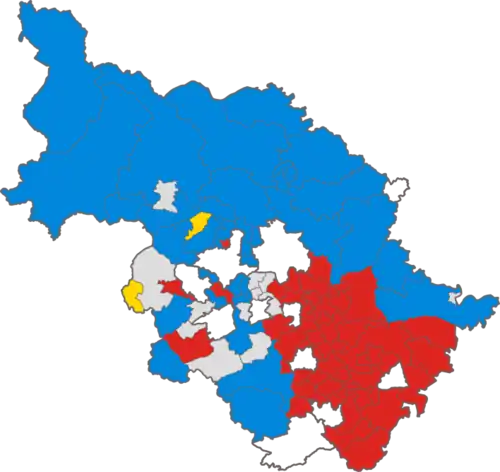 The 1955 West Riding County Council election was held on Saturday, 2 April 1955.[1] The election took place in the administrative county of the West Riding of Yorkshire, which excluded the county boroughs of Barnsley, Bradford, Dewsbury, Doncaster, Halifax, Huddersfield, Leeds, Rotherham, Sheffield, Wakefield and York.[2] The whole council of ninety-six members was up for election, with each county electoral division returning one councillor.[3]