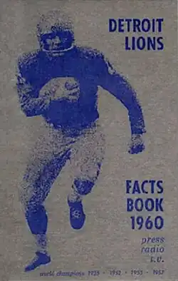 1. ^ a b Edward M. "Bud" Erickson (ed.), Detroit Lions Facts Book 1963: Press, Radio, TV. Detroit, MI: Detroit Football Company, 1963, p. 4.