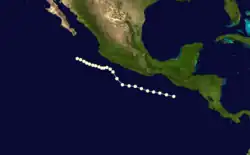 Fernanda formed on September 3 southwest of Guatemala where it moved west-northwest as a category 1 hurricane before dissipating on September 8 southwest of Mexico.[2]