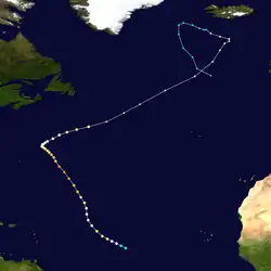 - ^ a b c d e f g h i j k l m n o p q r s t u v w x y z aa ab ac ad ae af ag ah ai aj ak al am an ao ap "Atlantic hurricane best track (HURDAT version 2)" (Database). United States National Hurricane Center. May 11, 2024.