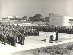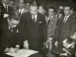 Internally, the priority was, from the beginning, to recover the full presidential powers subtracted by the implantation of parliamentarism. To do so, Goulart would need to pressure Congress to overthrow the parliamentary Additional Act, possibly with a constituent assembly, or bring forward the plebiscite scheduled for 1965 in which the system of government would be submitted to popular consultation.[49] The anti-parliamentary coalition was broad, as even the president's enemies wanted a return to presidentialism. Through strong labor, military and political pressure, in September 1962 Congress brought forward the popular consultation to January 1963.[50]