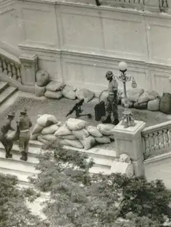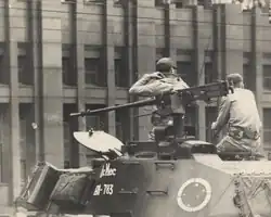 The classification of the coup as "civil-military" is widespread and is not recent. One of the first authors to use it was René Armand Dreifuss, in 1981; however, the term was used in the sense of "business-military", referring to specific civilians, and not generically to civilians as the entire non-military population.[11] Since at least 1976, several authors have called the event a "political-military", "business-military" or "civil-military" "movement" or "coup". "Civil-military" is used because civilians not only supported, but also carried out the coup.[12] The relative importance of the military was greater in the final stages and in the realization of the coup. It could only begin with the deployment of troops. Firepower, available armaments, vehicles employed, and troop size were important and purely military considerations, even though there was no combat.[13][14]