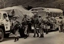 Upon returning to the academy, the following day, the cadets with dirty and even torn uniforms were received by military personnel from the academy and from São Paulo and civilians from Resende, showing the support of part of the local population for Médici's position. The BCSv was not yet completely demobilized.[65][96] The academy supported the activities of the 1st BIB in Volta Redonda and Barra Mansa and received prisoners sent from there.[97]