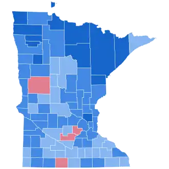 To date Johnson's performance is the best ever for a Democrat in Minnesota, in fact, no presidential candidate has since obtained more than 55% of the state's vote in a presidential election. Despite Johnson's emphatic win, as of the 2024 presidential election, this is the last election when Minnesota voted to the right of Alaska, Kentucky or Missouri, but also the last in which Brown County, Redwood County, and Rock County voted for a Democratic presidential candidate. Olmsted County would not vote Democratic again until 2008.[2]