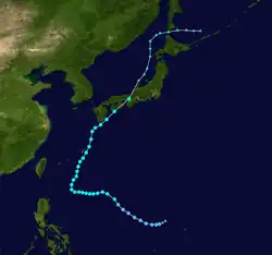 - ^ "Typhoon 196629 (Kathy) – Detailed Track Information". Japan Meteorological Agency. National Institute of Informatics. July 16, 1991. Retrieved March 12, 2015.