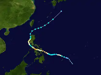 | Peak intensity | 315 km/h (195 mph) (1-min); 880 hPa (mbar) |