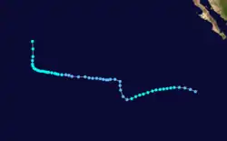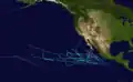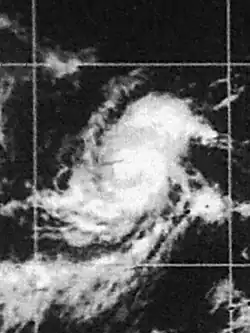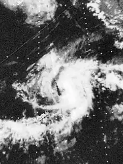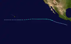 On July 6, a tropical depression formed south of Mexico. The depression had its origin in a loosely organized area of squalls which had first appeared on satellite photos late on July 5. It strengthened to a tropical storm on the 9th and was named Denise.[5] On July 15, Denise, now in the Central Pacific weakened into a tropical depression. The depression dissipated south-west of Hawaii on July 18, never threatening land.[6][7][8]