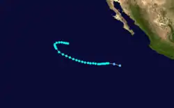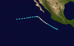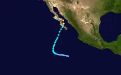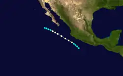 On June 16, a tropical storm was identified south of Mexico with winds of 45 mph (72 km/h).[3] It weakened as it approached the Mexican mainland and dissipated later that day.[3]